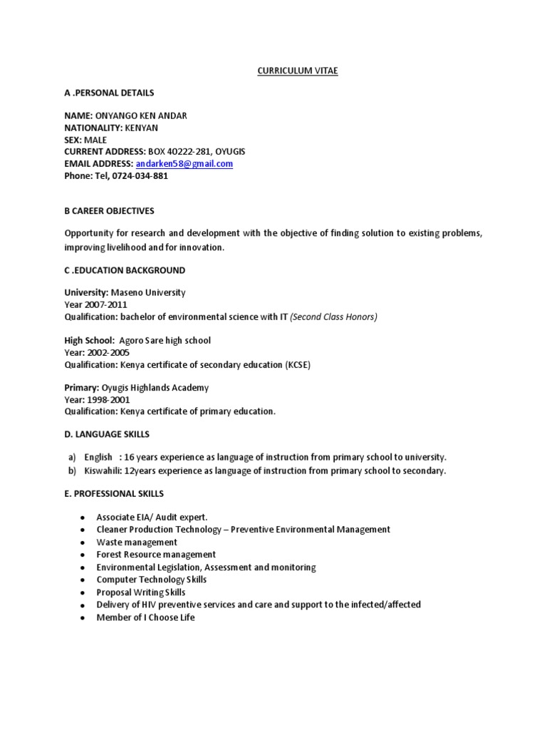 How To Write A Curriculum Vitae In Kenya : Cv Samples Pdf And Microsoft Word Format : ( ceylon ), pgce ( kenya ), m.sc.